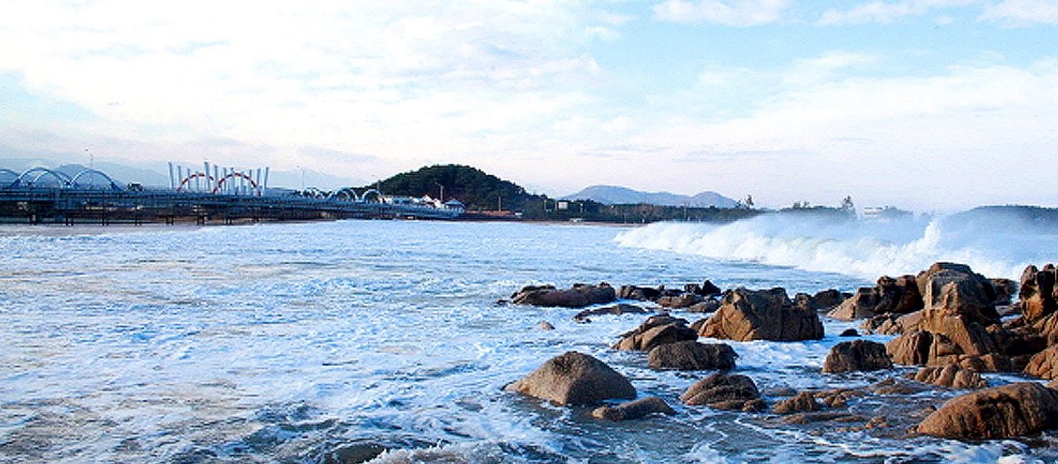 백섬해상전망대는 동해바다의 절경을 감상할 수 있는 해상 전망대입니다. 전망대는 해안도로와 백섬을 연결하며, 투명한 강화유리로 된 바닥 구간을 걸으며 짜릿한 경험을 할 수 있습니다.