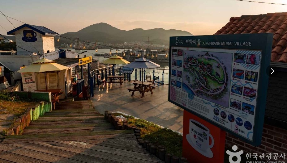 통영항 근처에 위치한 동피랑 벽화마을은 골목마다 그려진 독특한 벽화가 매력적입니다. 여유롭게 골목길을 걸으며 통영항 전경도 감상할 수 있습니다.