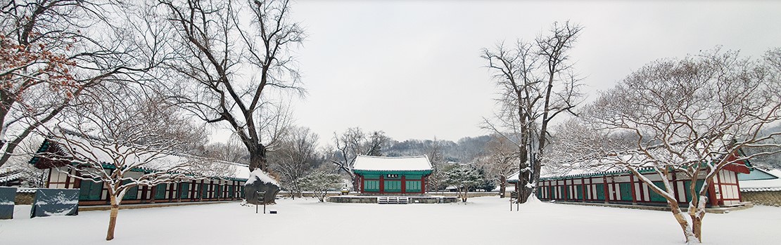 해질녘에 방문하면 석양과 어우러진 눈 덮인 한옥마을의 전경을 감상할 수 있어 더욱 낭만적입니다.