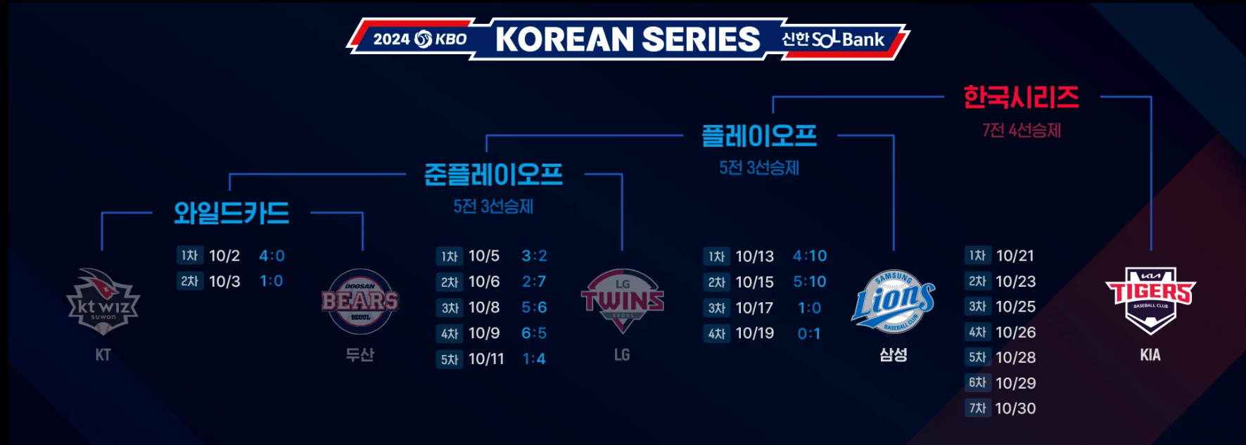 2024 한국시리즈는 10월 21일 시작하여 최대 10월 29일까지 이어질 예정입니다. 두 팀 모두 프로야구의 강자, 그리고 수많은 명승부를 남긴 기아 타이거즈와 삼성 라이온즈가 1993년 이후 다시 한국시리즈에서 만난다는 점에서 많은 기대를 모으고 있습니다.
